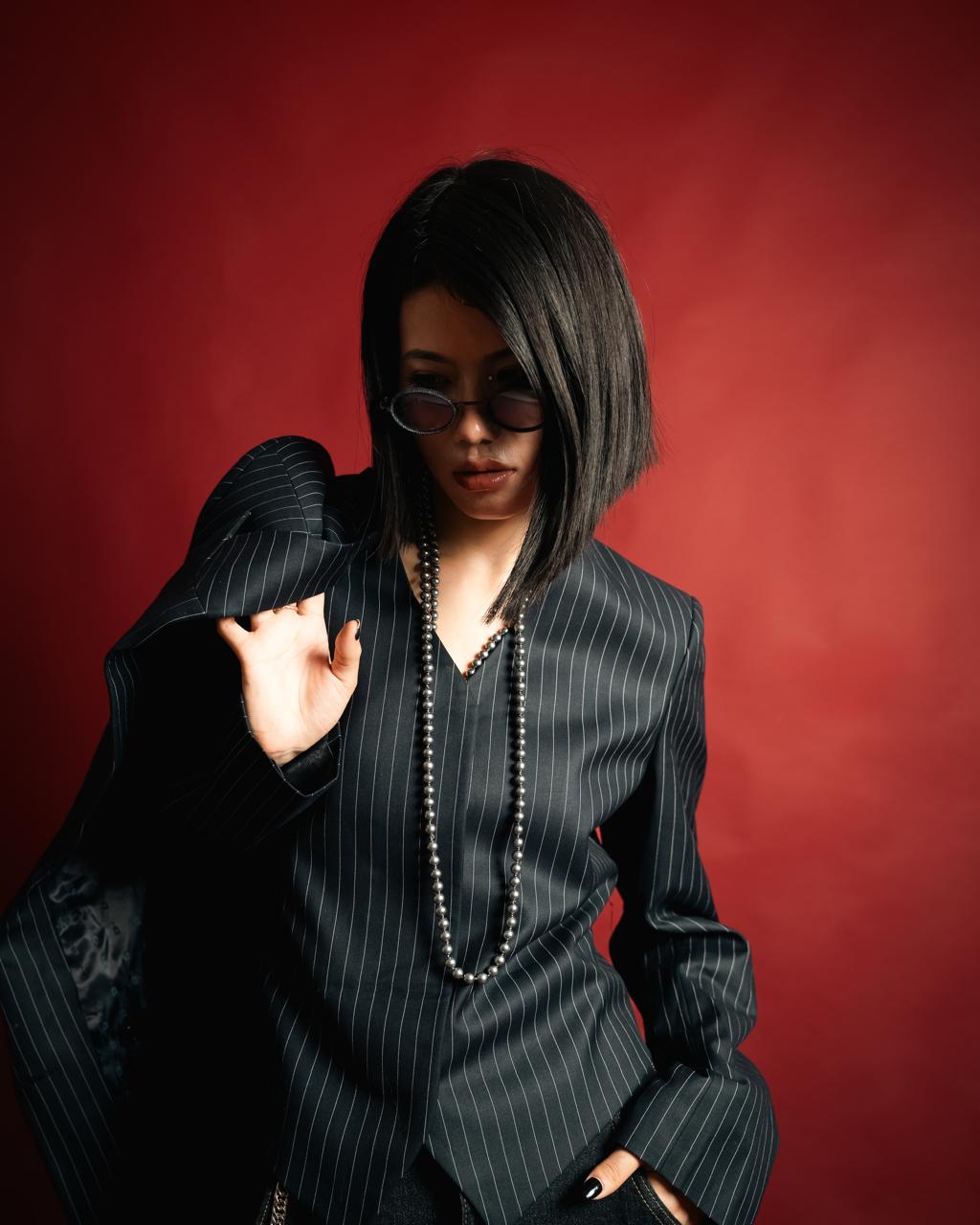 Designed with a classic pinstripe pattern and an oversized fit, it delivers the ideal balance of structure and ease. The soft shoulder, clean lapel, and deep navy base make it versatile enough for polished office outfits and elevated casual styling alike.